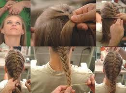 4- Pegue os cabelos laterais em uma quantidade adequada para trança-los com a primeira trança.
